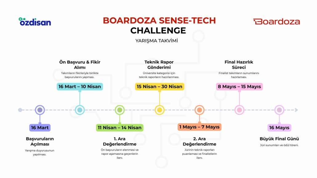 Boardoza SENSE-TECH Challenge; genç yeteneklerin teorik mühendislik bilgilerini fiziksel dünyaya entegre edecek vizyoner projeler geliştirmelerini amaçlayan, donanım odaklı bir fikir maratonudur. Yarışma, katılımcıların sensör teknolojileri, gömülü sistemler ve veri işleme disiplinlerini kullanarak; endüstriyel süreçlerden günlük yaşama kadar karşılaşılan kritik sorunlara akıllı ve sürdürülebilir çözüm tasarımları üretmesini hedefler.
